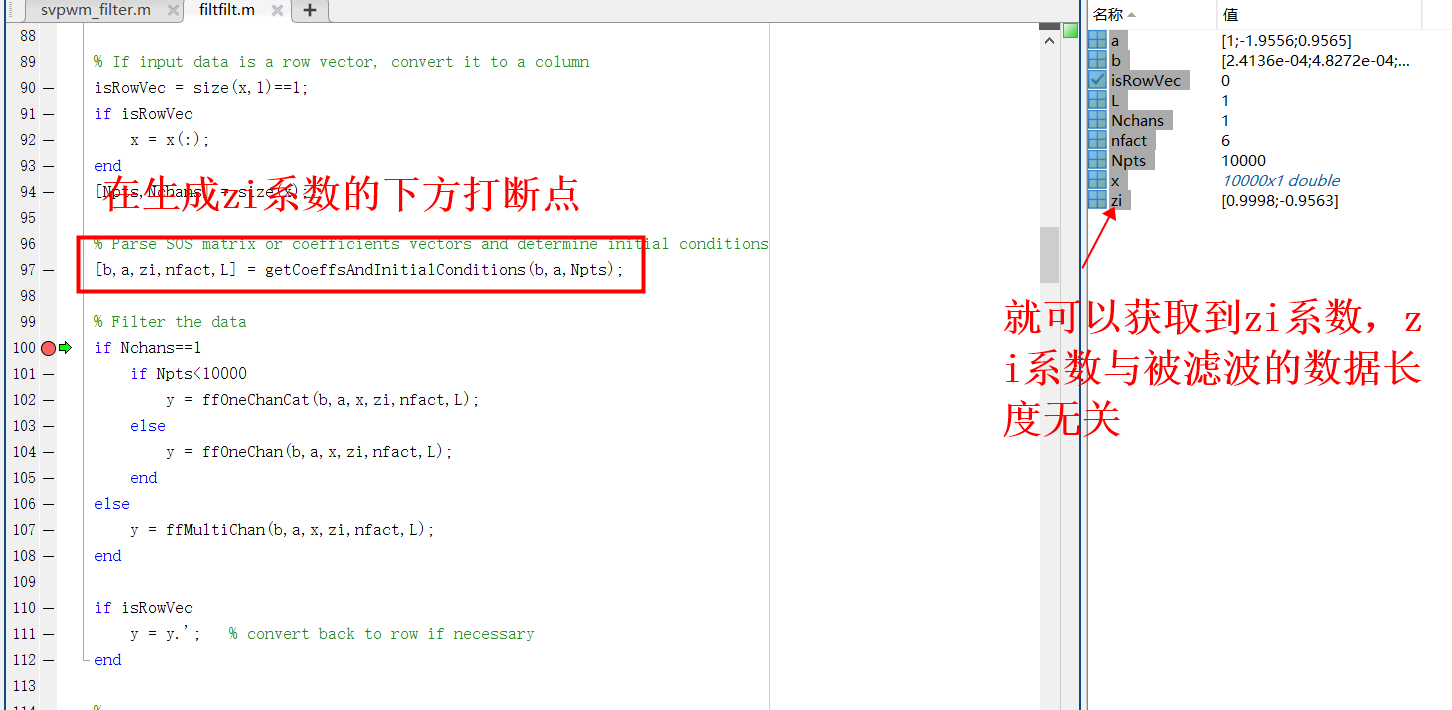 Filtfilt(零相位滤波)输出结果与Matlab的结果基本一致,如果a、b、zi、输入参数长度都保持一致,结果也与Matlab结果一致