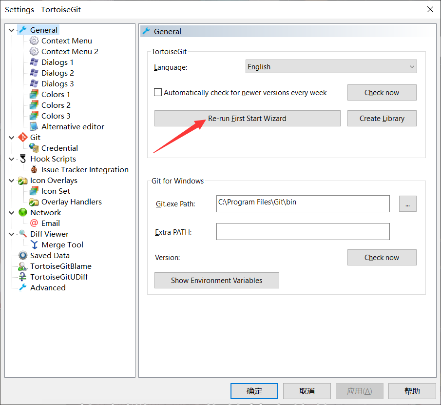 如果没有跳出向导可以右键 -> TortoiseGit -> setting