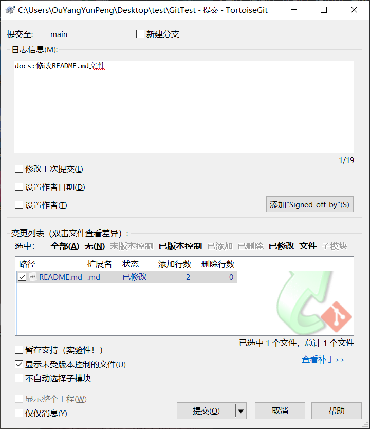 提交代码到本地Git仓库,并添加修改日志,日志信息推荐以下格式