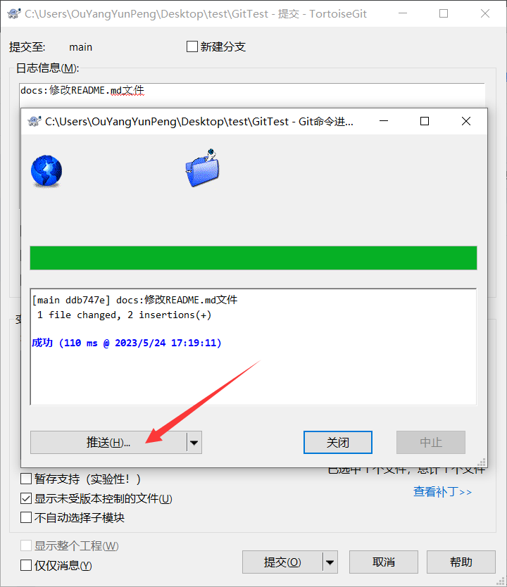 提交到本地Git仓库后可以点推送,将本地Git仓库推送到远端Git仓库