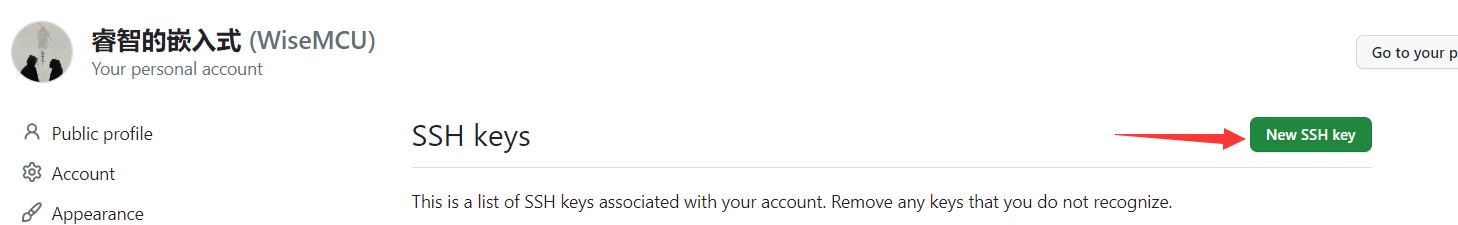 点击 New SSH key 添加公钥