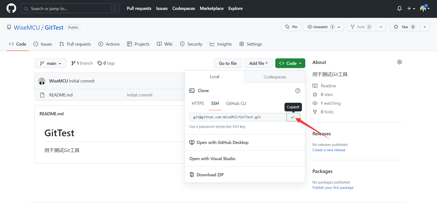 打开仓库并复制仓库SSH链接
