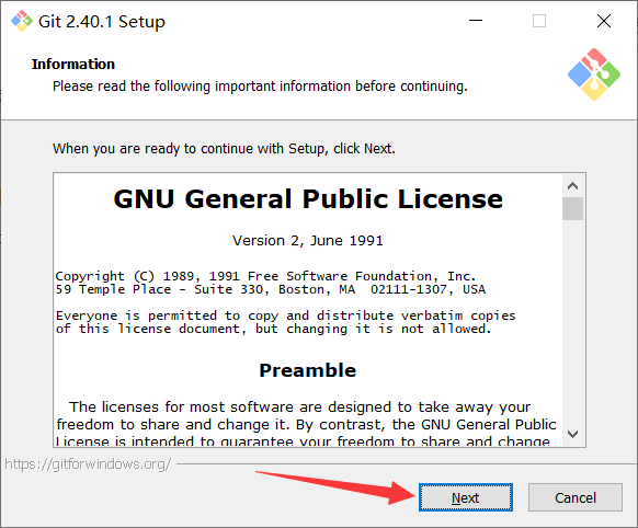 运行 Git 安装程序并 Next