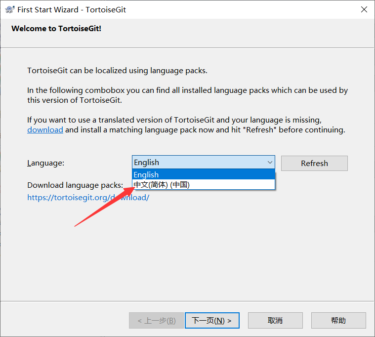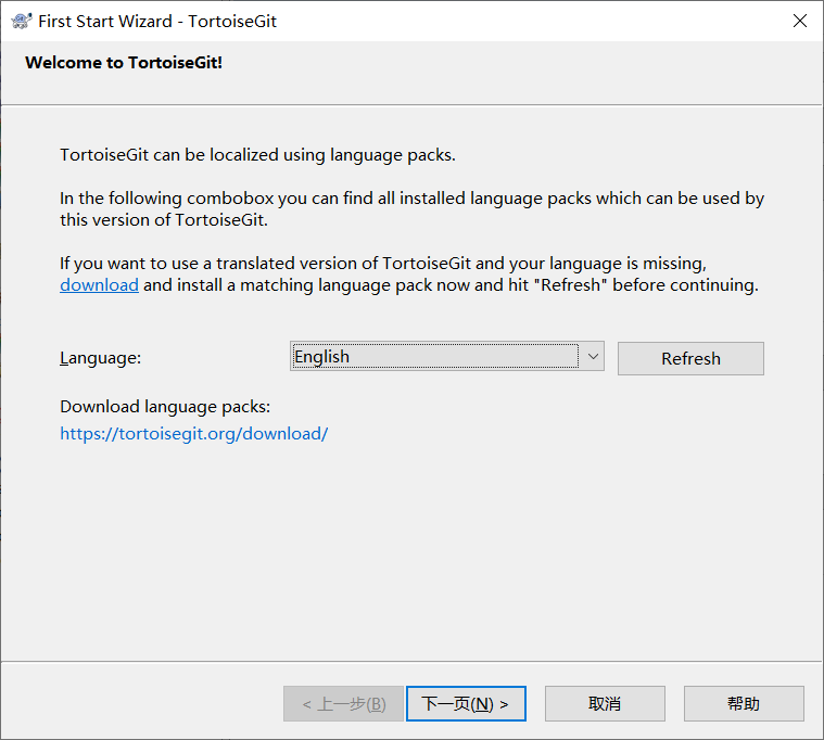 在向导页面运行安装 TortoiseGit 中文包,安装完记得勾选 Configure TortoiseGit to use this language