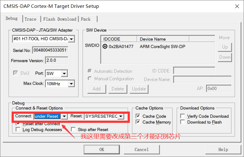 - 修改这几个框里面的选项有可能也可以识别到芯片,然后正常下载程序