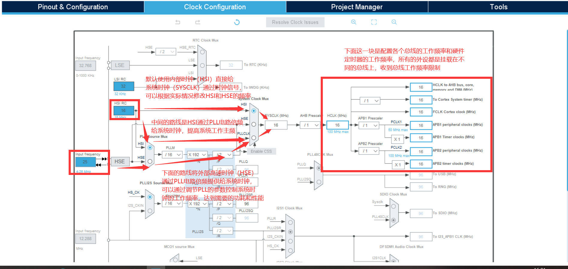 配置时钟树,直接将性能拉满,注意一个小细节我选择的开发板上外部焊接的晶振是12MHz,需要进行修改